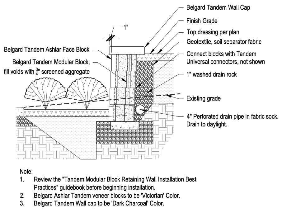 Drawing from “Time-Saver Standards for Landscape Architecture” by Charles W. Harris and Nicholas T. Dines, a key reference for professionals: “Selection criteria for retaining structures must consider site-specific conditions, including soil bearing capacity and hydrostatic pressure, to prevent failure” (Section 410-6). This underscores the importance of data-driven decisions. To illustrate retaining walls for Montana’s rugged terrain, this cross-section of a recent retaining wall on a sloped site shows how backfill and drainage layers mitigate water buildup—crucial in Montana’s wet springs.