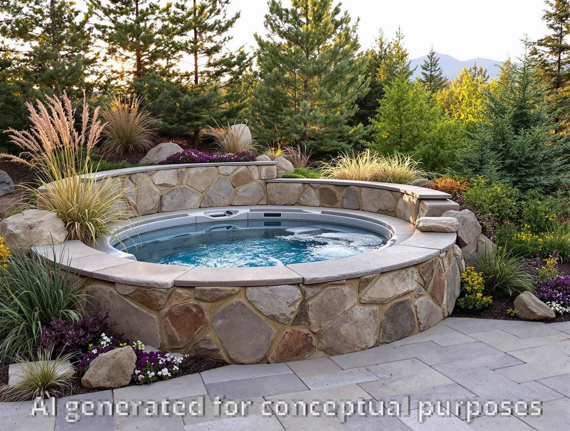 Your hot tub shouldn’t look like it was delivered yesterday. We nestle it into the landscape with graduated plantings, natural stone edges, and materials that tie into your existing hardscapes like: